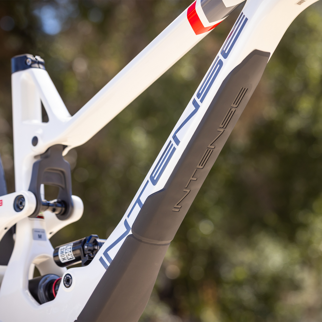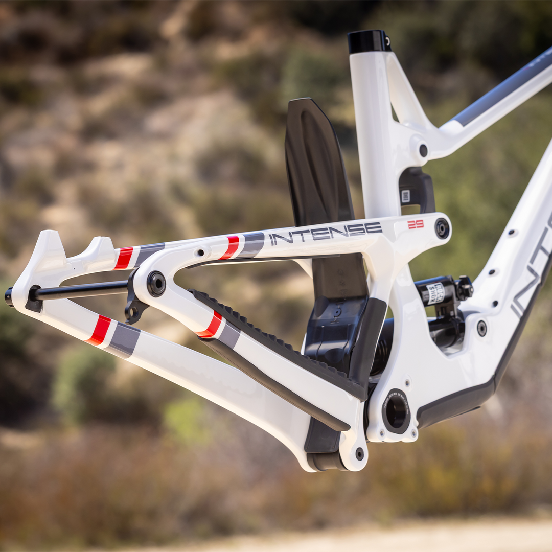 FRAME | Full carbon fiber front and rear triangle utilizing an optimized carbon layup for the enduro category. Features fully guided internal cable routing, carbon top link, titanium hardware, ISCG-05 tabs, and threaded BB. Universal derailleur hanger (UDH), T-type compatible, quick release rear axle (148mm Boost Hub Spacing) |