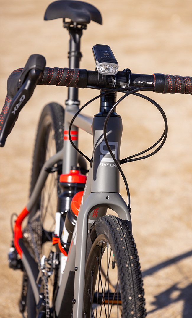 Our INTENSE 951 Gravel bike inspires confidence by using geometry optimized for stability and control. On loose and unpredictable terrain, the longer wheelbase and more relaxed frame geometry improve stability at higher speeds and on steeper ground. Our shorter stem paired with flared handlebars allows for excellent control and handling in all riding conditions.