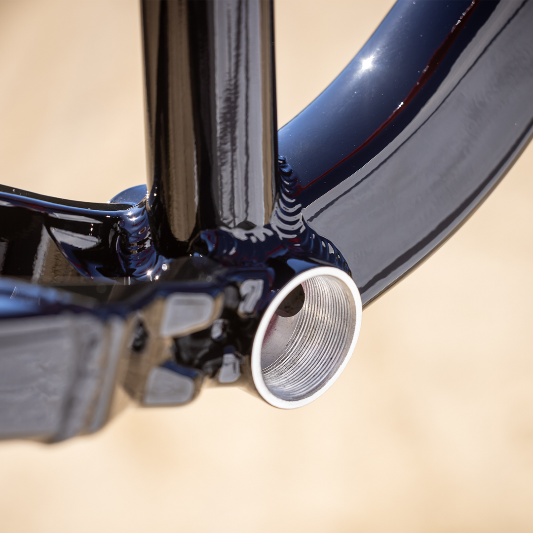 Designed around 26” wheels, the custom-butted 6061-T6 aluminum frame features modern dirt jump geometry – 68.5° headangle, 72° seattube angle and short 385-395mm (15.2”-15.6”) chainstays. The high-grade aluminum frame enables a lightweight, robust build ready for whatever you throw its way. Available in three sizes, so you can find the perfect fit. Size-down if you want more of a BMX/responsive feel or size up if you want more of an MTB/stable ride.
