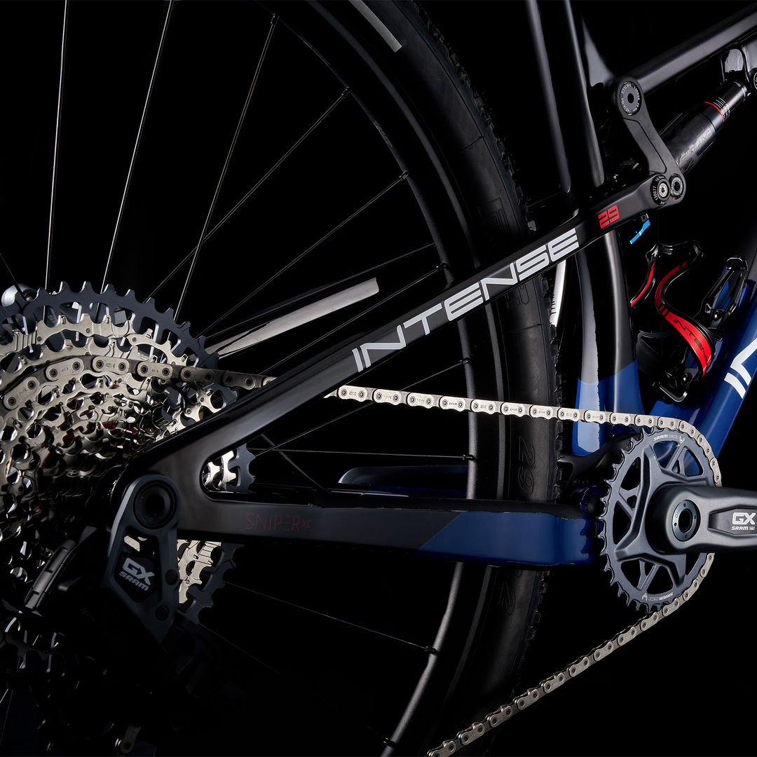 The Sniper XC boasts a lightweight carbon fiber frame complimented with lightweight DT Swiss rims and a carbon fiber dropper. This XC machine is all about speed whether up or down hills. It is fast, and stylish, the INTENSE way.